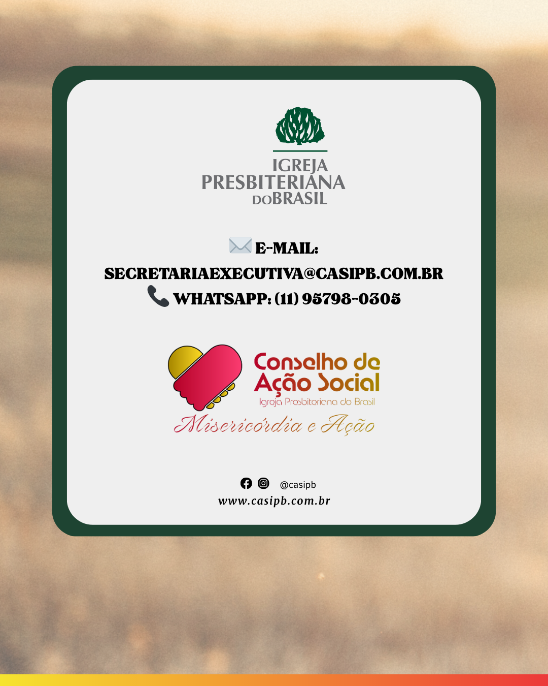 Última reunião do ano do Conselho de Ação Social da IPB Encerramos o ano com uma reunião virtual marcada por diálogo, responsabilidade e planejamento. Contamos com a participação do Presidente, Presb. Clineu Aparecido; do Secretário Executivo, Rev. Mariano Alves Júnior; do Tesoureiro, Rev. Esli Soares; e dos membros Rev. Lucas Nahas e Presb. Ivan Mendes. Na ocasião, foram tratadas demandas importantes relacionadas a ajudas e análises de relatórios, além de alinhamentos estratégicos com vistas ao ano de 2026. Seguimos firmes no compromisso com a ação social, servindo com zelo, transparência e amor cristão.